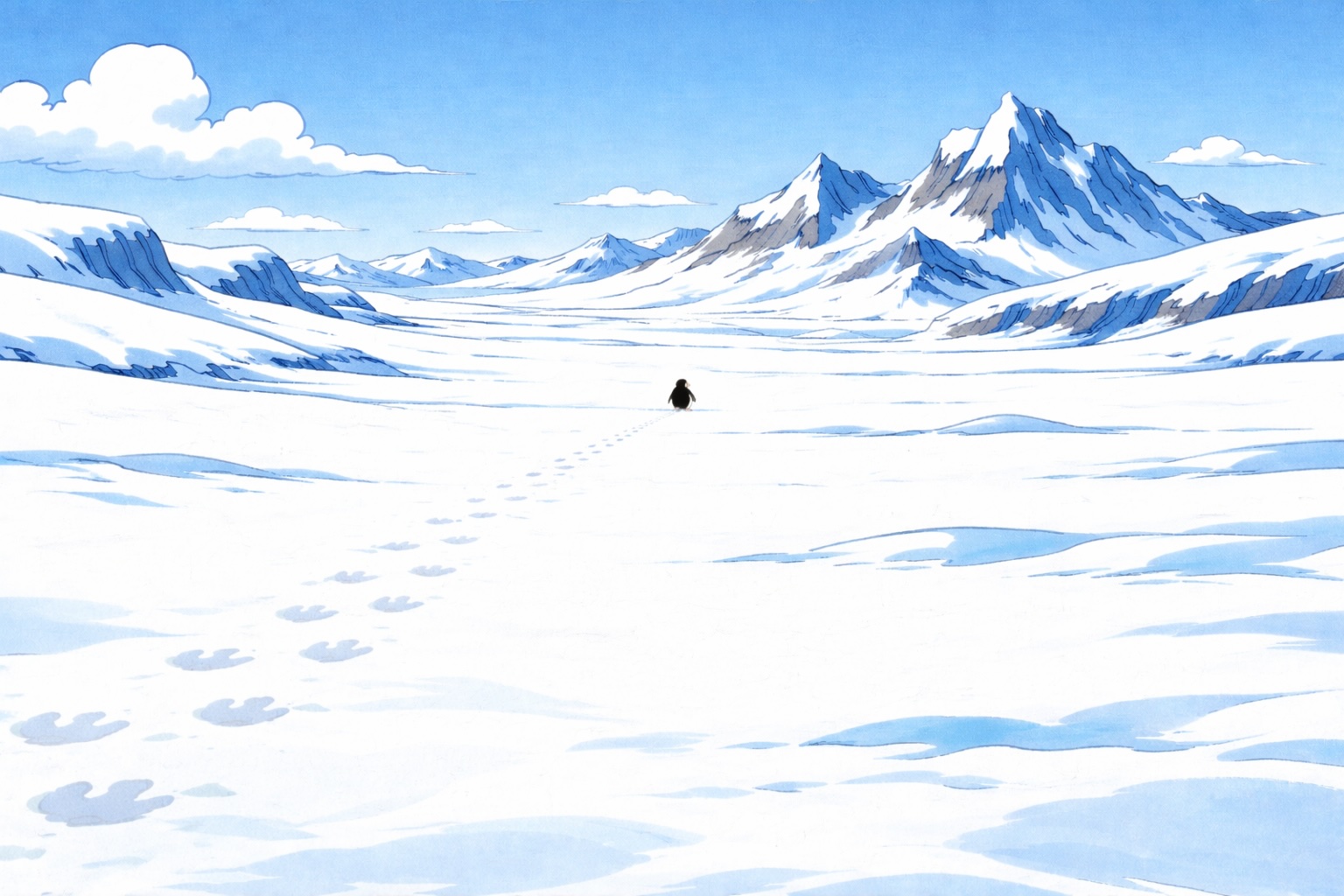 Naja, aber ich meine, sei wie ein Pinguin, nur gerade halt nicht wie der nihilistische Pinguin.Hast du eine These, warum? Warum geht der Pinguin in die Ferne? Ist das Verzweiflung?